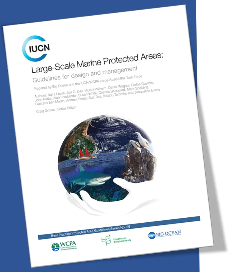 As coordinator for Big Ocean, a network of the worldʻs large-scale marine managed areas, I was able to lead a team to produce a collaborative publication, in partnership with the IUCN WCPA Large-Scale MPA Task Force, called Large-Scale Marine Protected Areas: Guidelines for design and management, Best Practice Protected Area Guidelines Series, No. 26. Launched at the 4th International Marine Protected Areas Congress, the guidelines can be downloaded by visiting Big Ocean's web site or from IUCNs online catalog.